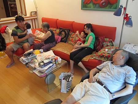(尋常的一天。家人各忙各的。爸爸總是可以在各種吵鬧的聚會中安然入睡)